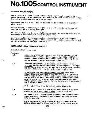 Installation Manual for the Ademco 1005. Model 1005. Physical installation guide, backbox dimensions, and cabling specifications.