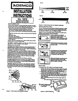 Installation Manual for the Ademco 1878, published in 1990. Document No: N3219V1, Rev: V1. Model 1878. Mounting instructions, wiring diagrams, and system power-up procedures.