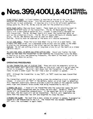 Installation and Operations Manual for the Ademco 399, 400U, and 401, published in 1980. 10 models including 399, 400U, 401 and 7 additional variants. System installation procedures and daily operating instructions.