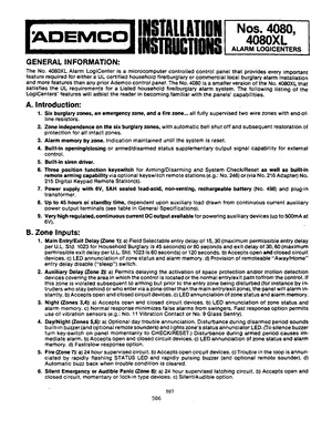 Installation Manual for the Ademco 4080 and 4080XL, published in 1983. Document No: P4953V2, Rev: V2. 17 models including 4080, 4080XL, 246 and 14 additional variants. Mounting instructions, wiring diagrams, and system power-up procedures.