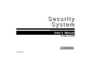 User Guide for the Ademco 4110DL and 4110XM, published in 1996. Document No: N5100V5, Rev: V5. Models 4110DL and 4110XM. Operator guide, alarm response procedures, and system status monitoring.