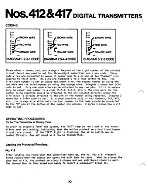 Installation and Operations Manual for the Ademco 412 and 417. Models 412, 417 and 1320. System installation procedures and daily operating instructions.