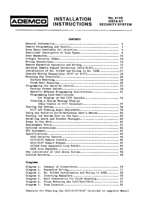 Installation and Programming Manual for the Ademco 4140 Series, published in 1988. Document No: N4410, Rev: 9/88. 23 models including 4140, 5137, 4137 and 20 additional variants. Physical installation procedures and comprehensive software setup guide.