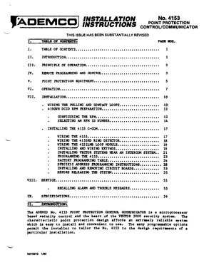 Installation and Programming Manual for the Ademco 4153 Series, published in 1990. Document No: N2759V3, Rev: V3. 32 models including 4153, 4153RD, 4152LMB and 29 additional variants. System installation requirements and database programming workflows.