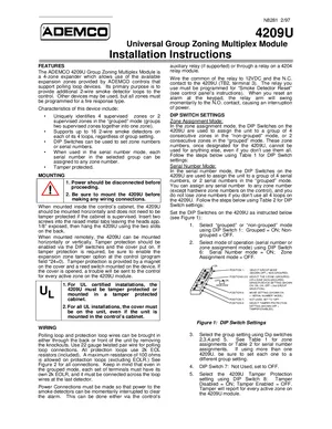 Installation and Programming Manual for the Ademco 4209U, published in 1997. Document No: N8281, Rev: 2/97. Model 4209U. System installation requirements and database programming workflows.