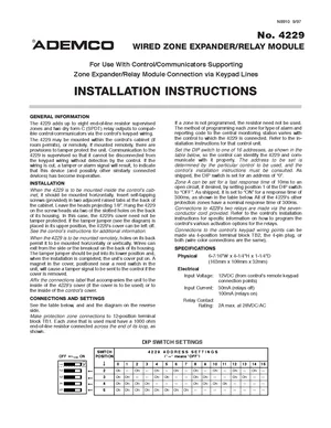 Installation Manual for the Ademco 4229, published in 1997. Document No: N8910, Rev: 9/97. Model 4229. Mounting instructions, wiring diagrams, and system power-up procedures.