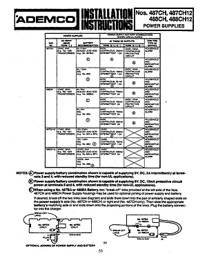 Installation Manual for the Ademco 487CH, 487CH12, 488CH, 488CH12, published in 1982. Document No: P8520. 4 models including 487CH, 487CH12, 488CH and 1 additional variants. Hardware installation, terminal connections, and environmental requirements.