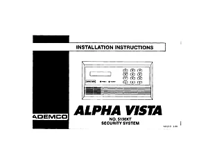 Installation Manual for the Ademco 5130XT, published in 1989. Document No: N3122-3. Model 5130XT. Hardware installation, terminal connections, and environmental requirements.