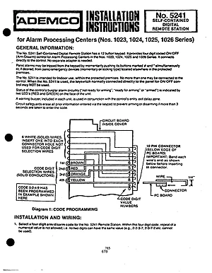 Installation Manual for the Ademco 5241, published in 1983. Document No: P4473V1, Rev: 12 83. Model 5241. Mounting instructions, wiring diagrams, and system power-up procedures.