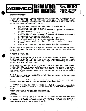 Installation Manual for the Ademco 5650. Document No: 697. Model 5650. Mounting instructions, wiring diagrams, and system power-up procedures.