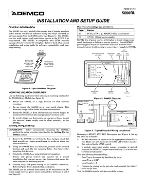 Installation Manual for the Ademco 5800RL, published in 2001. Document No: K3790. Model 5800RL. Hardware installation, terminal connections, and environmental requirements.