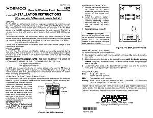Installation Manual for the Ademco 5801, published in 1998. Document No: N6478V2. Model 5801. Physical installation guide, backbox dimensions, and cabling specifications.