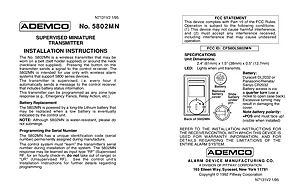 Installation Manual for the Ademco 5802MN, published in 1995. Document No: N7131V2, Rev: 1/95. Model 5802MN. Hardware installation, terminal connections, and environmental requirements.