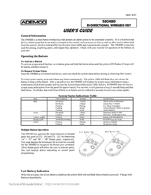 User Guide for the Ademco 5804BD, published in 1997. Document No: N8547. Model 5804BD. End-user operating instructions, system navigation, and daily operation procedures.