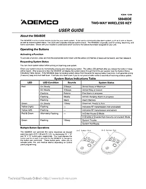 User Guide for the Ademco 5804BDE, published in 1999. Document No: K3644. Model 5804BDE. End-user operating instructions, system navigation, and daily operation procedures.