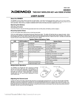 User Guide for the Ademco 5804BDV, published in 1999. Document No: K3636. Model 5804BDV. Operator guide, alarm response procedures, and system status monitoring.