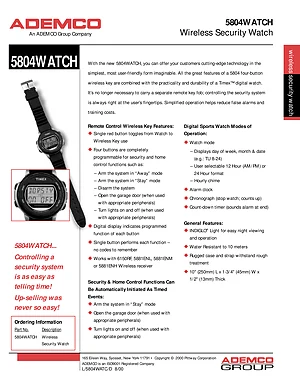 Datasheet for the Ademco 5804WATCH, published in 2000. Document No: L/5804WATC/D. Model 5804WATCH. Detailed technical specifications, electrical ratings, and agency listings.