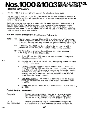 Installation and Operations Manual for the Ademco No. 1000 & 1003 Deluxe Control Instruments. 9 models including 1000, 1003, 355 and 6 additional variants. Hardware mounting, wiring, and user system management.
