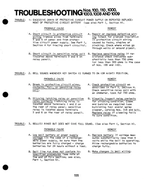 Troubleshooting Guide for the Ademco No. 100, 110, 1000, 1003, 1008 and 1009. 6 models including 100, 110, 1000 and 3 additional variants. Complete system installation, daily operation procedures, and detailed programming configurations.
