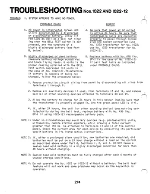 Troubleshooting Guide for the Ademco No. 1022 & 1022-12. 17 models including 1022, 1022-12, 1320 and 14 additional variants. Hardware installation, alarm/fault management, and advanced system configuration.