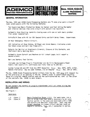Installation and Operations Manual for the Ademco No. 1024 & 1024B Alarm Processing Center, published in 1979. Document No: 3946, Rev: A. Models 1024 and 1024B. Complete setup guide and operational workflows.