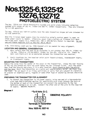 Installation Manual for the Ademco No. 1325-6, 1325-12, 1327-6 and 1327-12 Photoelectric System. 18 models including 1325-6, 1325-12, 1327-6 and 15 additional variants. Hardware installation, terminal connections, and environmental requirements.