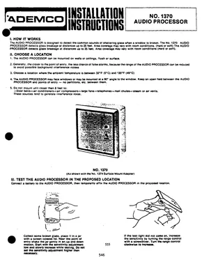 Installation Manual for the Ademco No. 1370 Audio Processor, published in 1983. Document No: V1370. Models 1370 and 1374. Mounting instructions, wiring diagrams, and system power-up procedures.