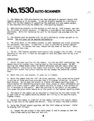 Installation Manual for the Ademco No. 1530 Auto Scanner. Models 1530 and 1532. Hardware installation, terminal connections, and environmental requirements.