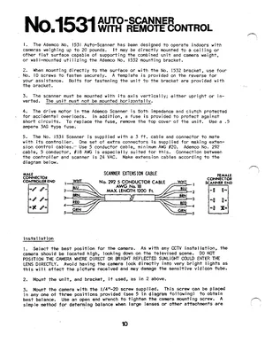 Installation and Operations Manual for the Ademco No. 1531 Auto Scanner With Remote Control. Models 1531, 1532 and 292. System installation procedures and daily operating instructions.