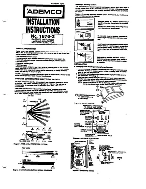 Installation Manual for the Ademco No. 1876-2 Passive Infrared Motion Detector, published in 1991. Document No: N3219-9V1. Model 1876-2. Hardware installation, terminal connections, and environmental requirements.