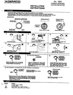 Installation and Operations Manual for the Ademco No. 1895 Passive Infrared Motion Detector, published in 1991. Document No: N5610. Model 1895. Complete setup guide and operational workflows.