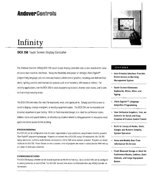 Datasheet for the Andover Controls DCX 250, published in 1998. Document No: DS-DCX250-2.95, Rev: 2.95. 5 models including DCX 250, CX, CMX and 2 additional variants. Product features, environmental operating limits, and compatibility data.