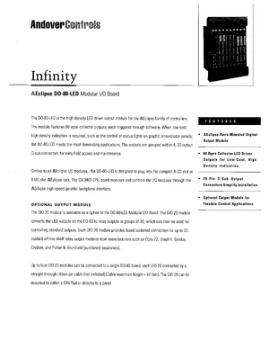 Datasheet for the Andover Controls DO-80-LED, published in 1997. Document No: DS-DO-80-LED-B, Rev: B. Models DO-80-LED, DIO 20 and CX 9400. Detailed technical specifications, electrical ratings, and agency listings.