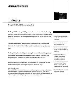 Datasheet for the Andover Controls EnergyLink 2000 and 2100, published in 1996. Document No: DS-ENL2000-3.96. 8 models including EnergyLink 2000, EnergyLink 2100, 2001 and 5 additional variants. Detailed technical specifications, electrical ratings, and agency listings.