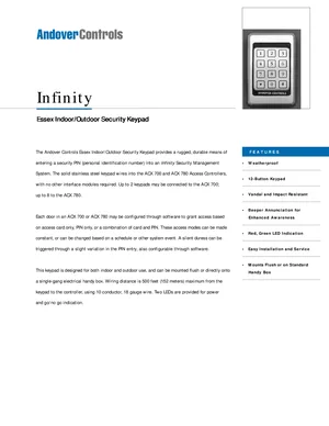 Datasheet for the Andover Controls Essex, published in 1996. Document No: DS-ESSEX-A, Rev: A. Models Essex, ACX 700 and ACX 780. Engineering specifications, wiring diagrams, and mounting dimensions.