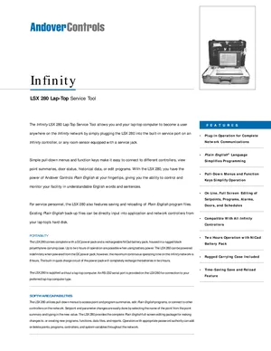 Datasheet for the Andover Controls LSX 280, published in 1998. Document No: DS-LSX-B, Rev: B. Model LSX 280. Detailed technical specifications, electrical ratings, and agency listings.