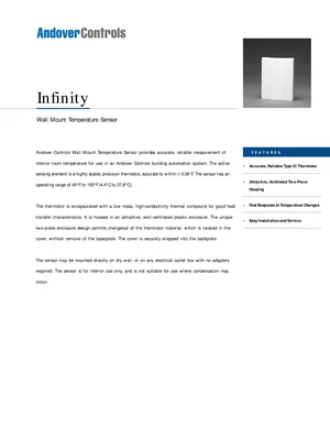 Datasheet for the Andover Controls TTS-S-1 and TTS-S-B-1, published in 1998. Document No: DS-WallMount-B, Rev: B. Models TTS-S-1 and TTS-S-B-1. Product features, environmental operating limits, and compatibility data.