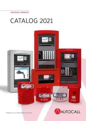 Brochure for the Autocall Product Catalog 2021, published in 2021. Document No: AC-CAT2021INT-ENG. 8 models including 4100ES, 4009, 4010ES and 5 additional variants. System capabilities, competitive advantages, and integration options.