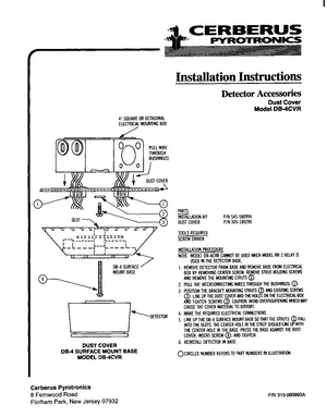 Installation Manual for the Cerberus Pyrotronics DB-4CVR. Document No: 315-080993A, Rev: A. Models DB-4CVR, RR-2 and DB-4. Hardware installation, terminal connections, and environmental requirements.