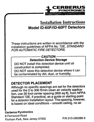 Installation and Programming Manual for the Cerberus Pyrotronics ID-60P and ID-60PT. Document No: 315-090289-3, Rev: 3. 7 models including ID-60P, ID-60PT, RLX-1 and 4 additional variants. System installation requirements and database programming workflows.