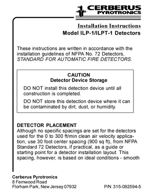 Installation Manual for the Cerberus Pyrotronics ILP-1 and ILPT-1. Document No: 315-092594-5, Rev: 5. Models ILP-1 and ILPT-1. Mounting instructions, wiring diagrams, and system power-up procedures.