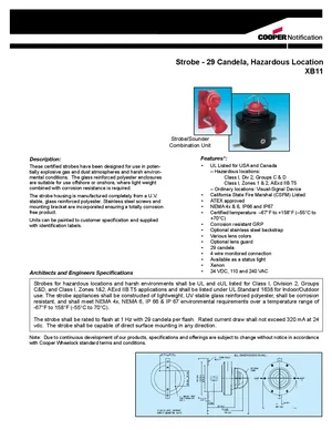 Datasheet for the Cooper XB11, published in 2008. Document No: XB11, Rev: 02/08. 6 models including XB11, XB11UL02406RNBNNNR, XB11UL02406CNBNNNR and 3 additional variants. Detailed technical specifications, electrical ratings, and agency listings.