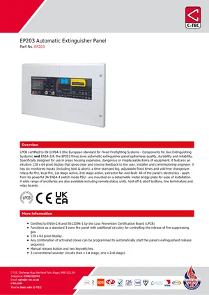 Datasheet for the C-TEC EP203. Model EP203. Engineering specifications, wiring diagrams, and mounting dimensions.