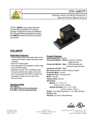 Datasheet for the DITEK DTK-2MHTP, published in 2007. Document No: SPS-100011-001, Rev: 5. Models DTK-2MHTP, DTK-2MHTPWB and DTK-MB10. Detailed technical specifications, electrical ratings, and agency listings.