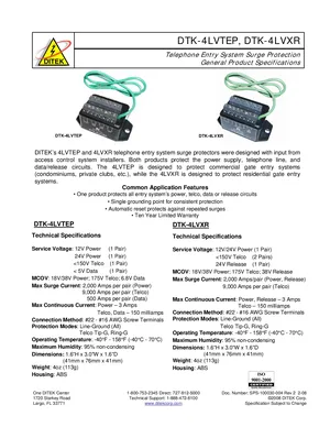Datasheet for the DITEK DTK-4LVTEP and DTK-4LVXR, published in 2008. Document No: SPS-100030-004, Rev: 2. Models DTK-4LVTEP and DTK-4LVXR. Detailed technical specifications, electrical ratings, and agency listings.