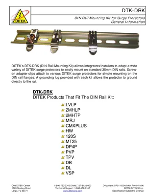 Datasheet for the DITEK DTK-DRK, published in 2006. Document No: SPS-100045-001, Rev: 0. 15 models including DTK-DRK, LVLP, 2MHLP and 12 additional variants. Product features, environmental operating limits, and compatibility data.