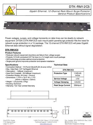 Datasheet for the DITEK DTK-RM12C5, published in 2008. Document No: SPS-100054-001, Rev: 2. Model DTK-RM12C5. Detailed technical specifications, electrical ratings, and agency listings.