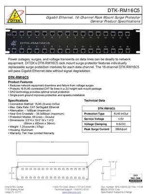 Datasheet for the DITEK DTK-RM16C5, published in 2008. Document No: SPS-100053-001, Rev: 1. Model DTK-RM16C5. Detailed technical specifications, electrical ratings, and agency listings.
