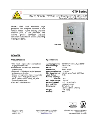 Datasheet for the DITEK GTP Series, published in 2009. Document No: SPS-100066-001, Rev: 4. Model DTK-3GTP. Product features, environmental operating limits, and compatibility data.