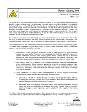 Technical Reference Manual for the DITEK Power Quality 101, published in 2007. Document No: STS-100003-001, Rev: 1. System architecture, detailed circuit analysis, and engineering specifications.